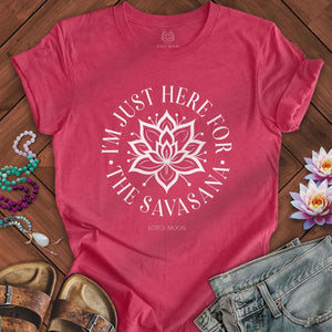Funny Yoga Shirt – “I’m Just Here For The Savasana” Lotus Flower Graphic Tee – Lotus Moon