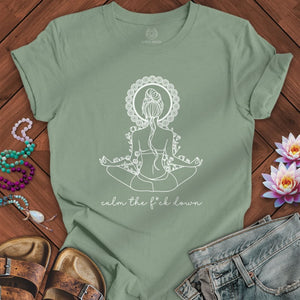 Calm the F*ck Down Graphic Tee – Mindful Meditation Shirt with Empowering Message – Lotus Moon