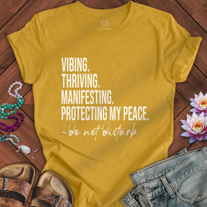 With its empowering text design reading “Vibing. Thriving. Manifesting. Protecting My Peace. – do not disturb,” this tee radiates confident calm and sacred boundary energy. Perfect for spiritual seekers, manifestors, and anyone on their self-love journey, it’s a reminder to stay centered and protect your light while you rise.